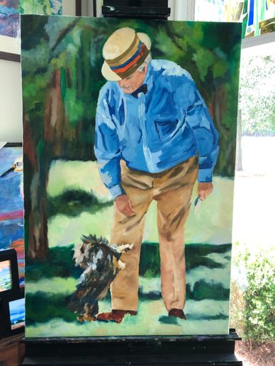 Her interest in art began with photography, which she still enjoys. Her first entry in Valdosta's Spring into Art" exhibition earned an award of Merit for her photograph of Nutt, her Brittany Spaniel.